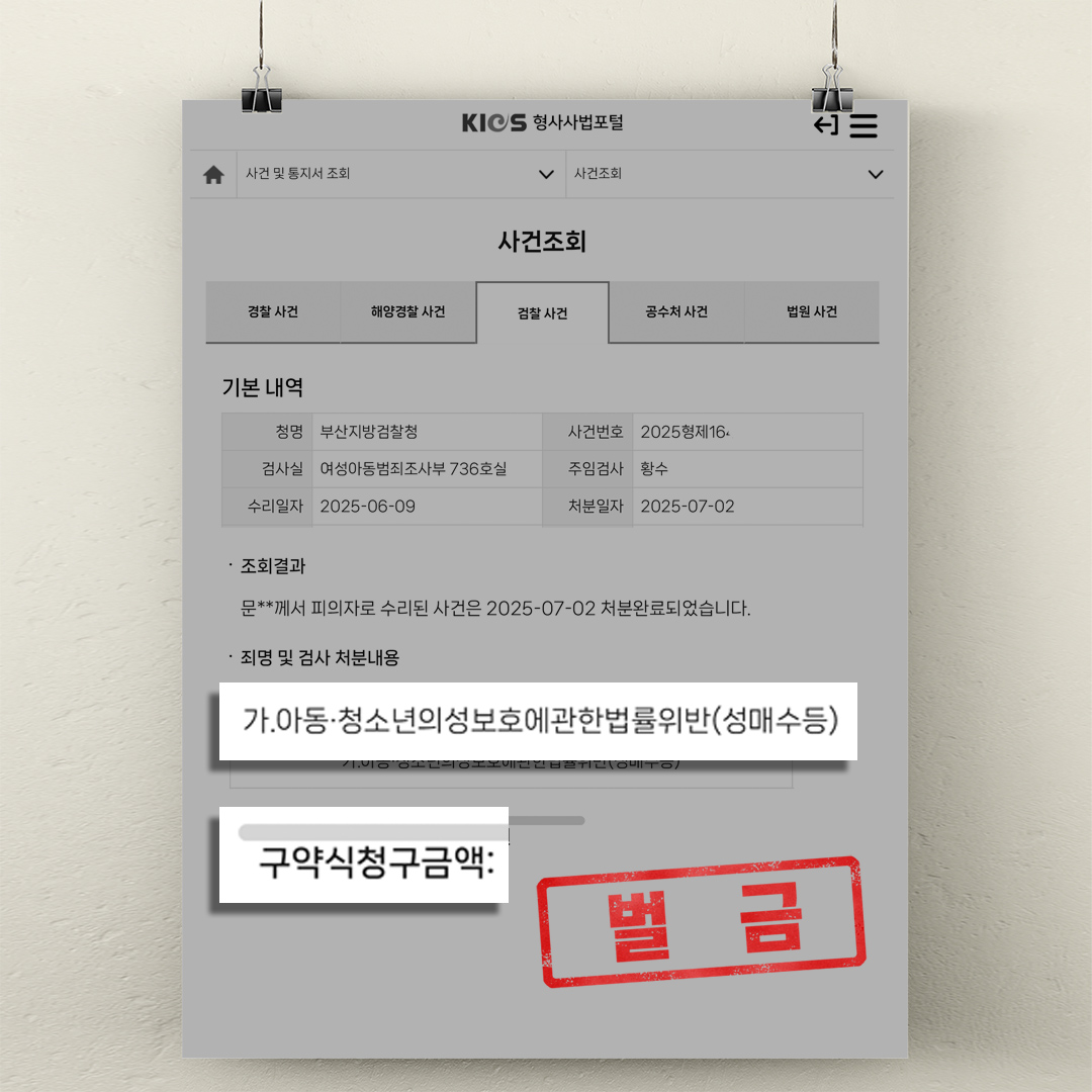 이에 담당검사는 16세미만의제강간에 대해서는 혐의없음 처분을, 아동청소년에 대한 성매매에 대해서는 벌금형 구약식처분을 하여 의뢰인은 일상으로 돌아갈 수 있었습니다.